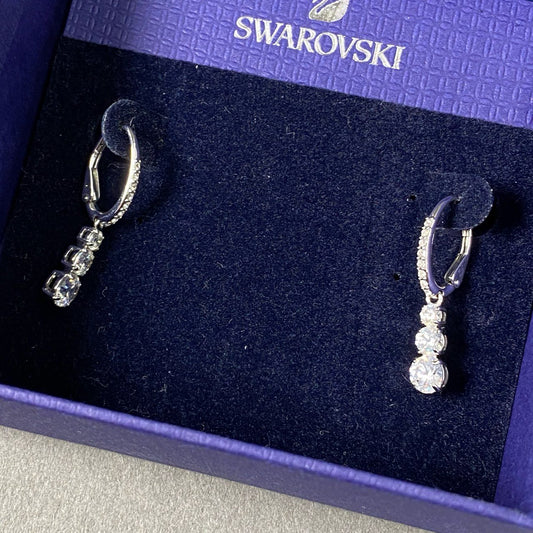 Pf16-2 《美品》 SWAROVSKI スワロフスキー 3連 ダイヤ クリスタル ピアス ビジュー ジュエリー 結婚式 セレモニー