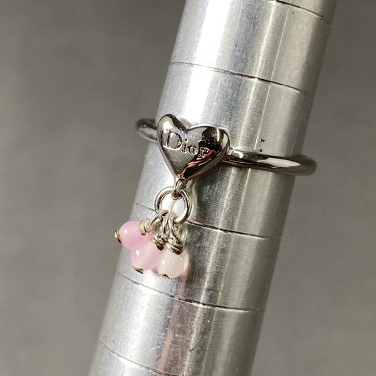 Pf16-2 《美品》 Dior ディオール ビーズ付 ハート リング 指輪 13号 ピンク シルバー アクセサリー ジュエリー Heart Ring