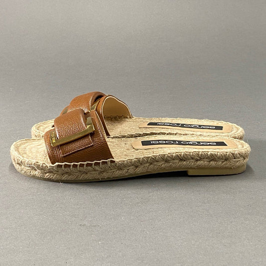 5f17 《美品》 定価¥82,500 sergio rossi セルジオロッシ SR PRINCE プリンス ゴールドバックル フラットサンダル 35 ブラウン レザー スペイン製 エスパドリーユ ロープソール