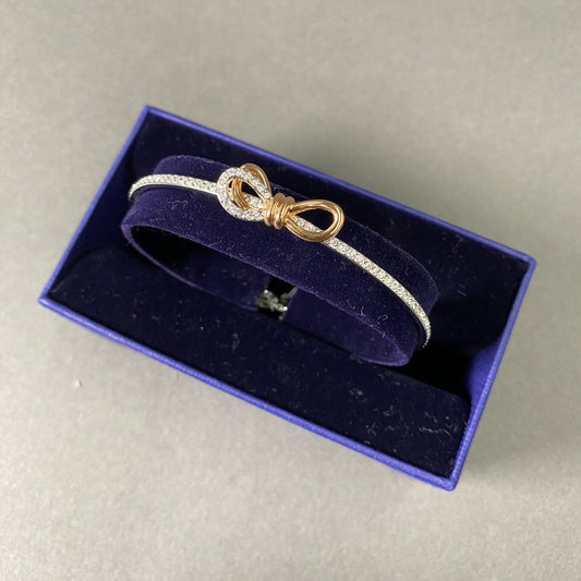 Pf16-4 《美品》 SWAROVSKI スワロフスキー LIFELONG BOW クリスタル リボン バングル ブレスレット 5447079 ダイヤ ビジュー 結婚式 セレモニー