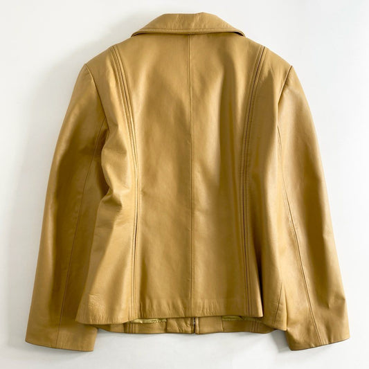 14e2 《美品》 大きいサイズ BALMAIN バルマン レザージャケット ブルゾン アウター ラムスキン シングルライダースジャケット 15 マスタード 羊革