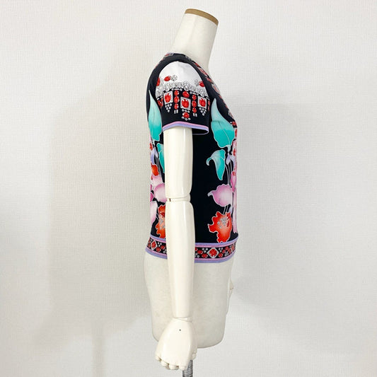 57e25 《美品》 LEONARD レオナール 半袖Tシャツ カットソー トップス 美しい花柄プリント サイズM マルチカラー コットン100% レディース 日本製