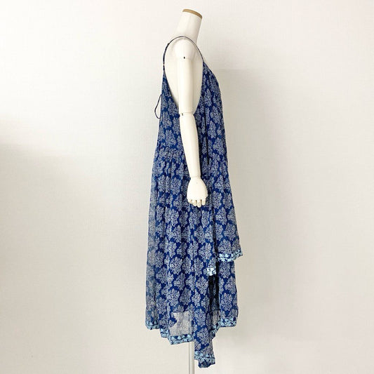 27e24-2 《未使用》 AS KNOW AS olaca アズノウアズ オオラカ インドへ誘うキャミワンピース 膝丈ワンピース サイズ15 ブルー レディース