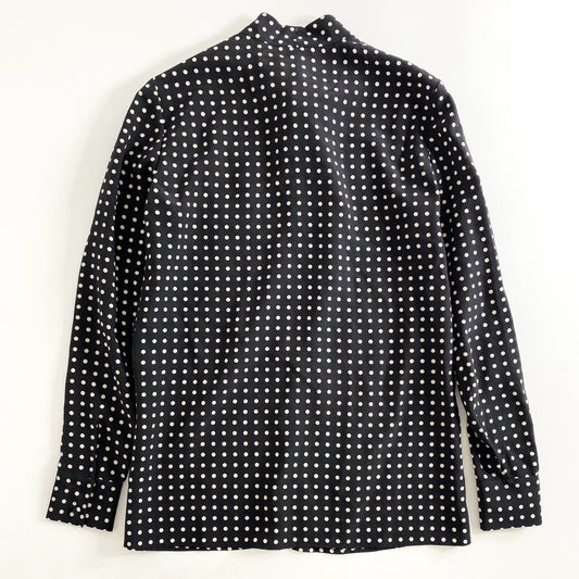 26e24 フランス製 SAINT LAURENT PARIS サンローラン ボウタイブラウス ポルカドット 長袖シャツ トップス ブラック×ホワイト シルク100% レディース