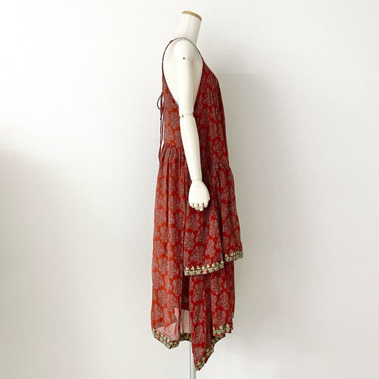 5e24-2 《未使用》 AS KNOW AS olaca アズノウアズ オオラカ インドへ誘うキャミワンピース 膝丈ワンピース サイズ15 レッド レディース