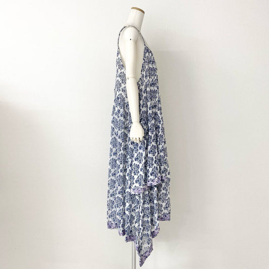 27e24-1 《未使用》 AS KNOW AS olaca アズノウアズ オオラカ インドへ誘うキャミワンピース 膝丈ワンピース サイズ19 ホワイト×ブルー レディース