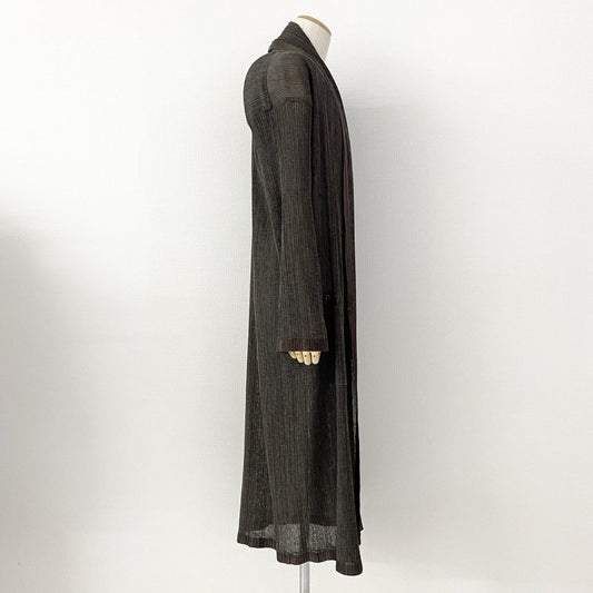 75e25 ISSEY MIYAKE イッセイミヤケ ガウンコート ロングカーディガン IM67-FA905 サイズL ブラウン ポリエステル100% レディース 日本製