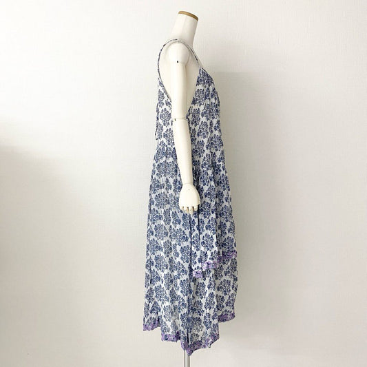 5e24-3 《未使用》 AS KNOW AS olaca アズノウアズ オオラカ インドへ誘うキャミワンピース 膝丈ワンピース 15 ブルー×ホワイト レディース