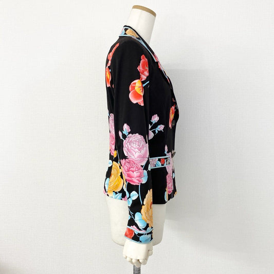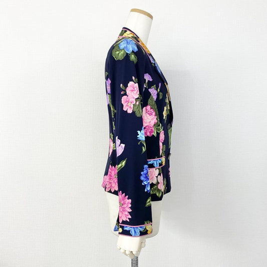 59e20【美品】LEONARD レオナール カンカン素材 花柄 テーラードジャケット ブレザー サイズL マルチカラー レディース 日本製 春