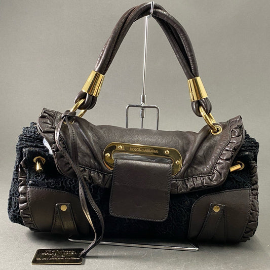 Ae19 DOLCE&GABBANA ドルチェアンドガッバーナ レース レザー ワンショルダーバッグ ハンドバッグ D&G ドルガバ ブラウン ブラック leather