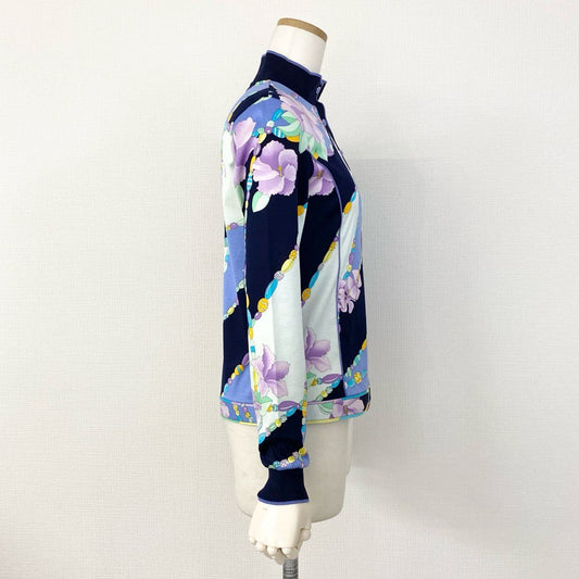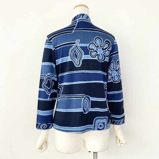 59e20 LEONARD SPORT レオナールスポーツ 美しい花柄プリント 長袖ポロシャツ 襟付きカットソー トップス サイズ38 マルチカラー コットン100% レディース 日本製