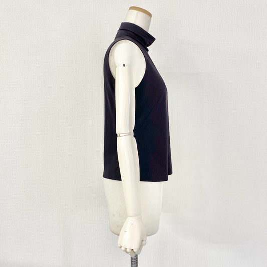 35e21 LEONARD レオナール カンカン素材 ハイネック ノースリーブカットソー トップス サイズM ネイビー レディース 日本製