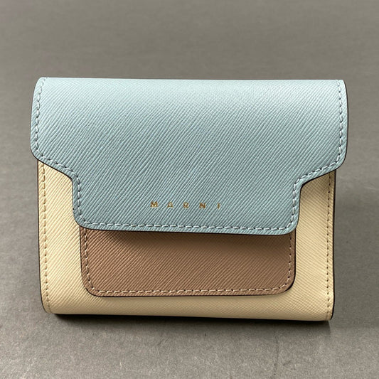 4e19 《美品》 MARNI マルニ SAFFIANO サフィアーノ 二つ折り 財布 ショートウォレット ブルー ベージュ レザー 小銭入れ
