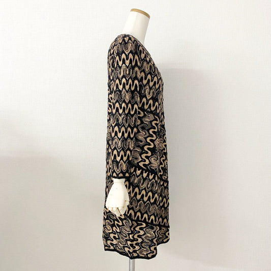 8d13 【美品】 伊製 MISSONI ミッソーニ ジャガードニット ニットワンピース 膝丈ワンピ 44 ブラック レディース