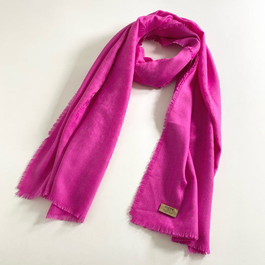 d12-6 LOEWE ロエベ 大判ストール ショール マフラー アナグラム フラワー ピンク シルク混 イタリア製