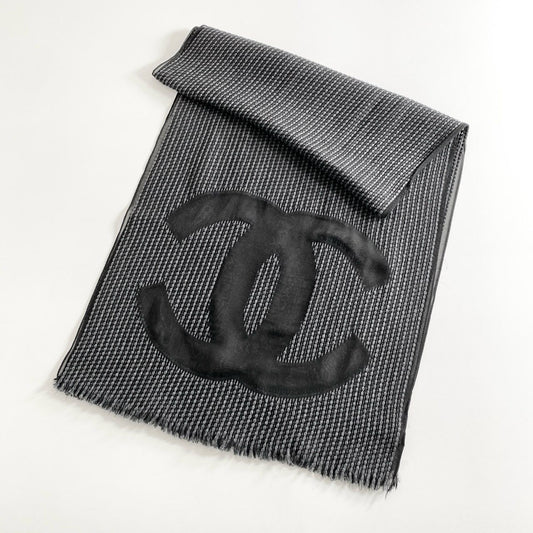 d12-5 CHANEL シャネル ココマーク シルク ストール ショール ブラック SILK100% イタリア製