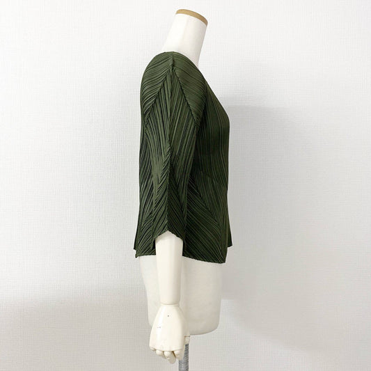 8d13 PLEATS PLEASE プリーツプリーズ 七分袖ブラウス カットソー PP33-JK622 3 カーキ レディース ISSEY MIYAKE イッセイミヤケ