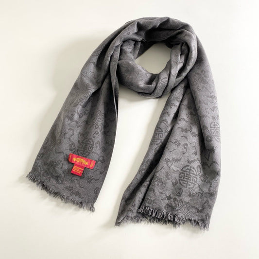 d12-7 SHANGHAI TANG シャンハイタン カシミヤシルク混紡 大判ストール ショール 肩掛け 羽織 総柄 グレー レディース