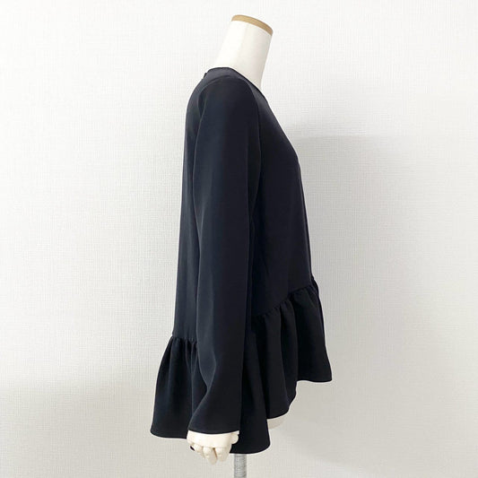 25d14 《美品》 YOKO CHAN ヨーコチャン ヘムギャザー ロングスリーブブラウス 長袖ブラウス バックジップ 38 ネイビー レディース 春物