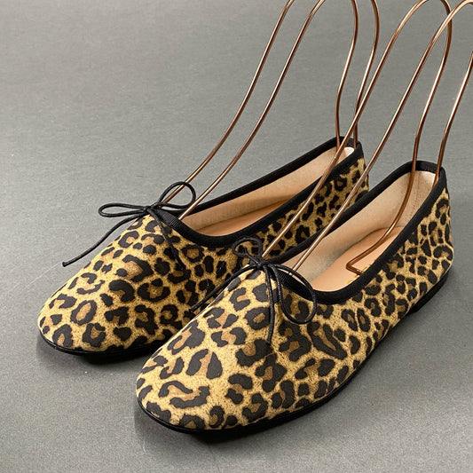 7d10《未使用》 SPELTA スペルタ Camoscio Maculato レオパード バレエシューズ 35 ブラウン ラムレザー 羊革 シープスキン イタリア製 箱有