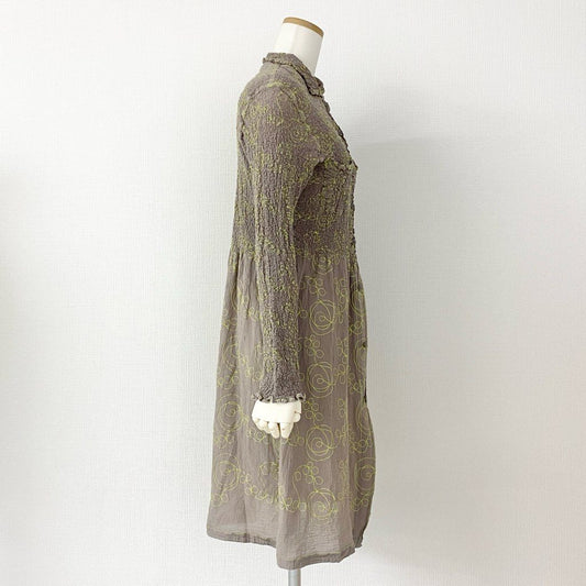 35d10 【美品】 ISSEY MIYAKE me イッセイミヤケ ミー MI82FK728 刺繍デザイン カリフラワー フロントボタン ワンピース ロングコート 羽織 フリーサイズ ベージュ レディース