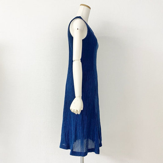 34d10 【美品】 ISSEY MIYAKE me イッセイミヤケ ミー MI52FH245 ノースリーブワンピース フリーサイズ ブルー系 レディース