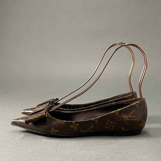 3d10 LOUIS VUITTON ルイヴィトン LV モノグラム リボン フラットシューズ 36 ブラウン パンプス イタリア製 レディース 婦人靴 靴