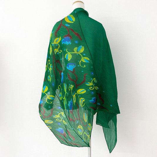 33d10 《美品》 ISSEY MIYAKE me イッセイミヤケ ミー チューリップ柄 プリーツ素材 大判ストール スカーフ グリーン M183-AD761