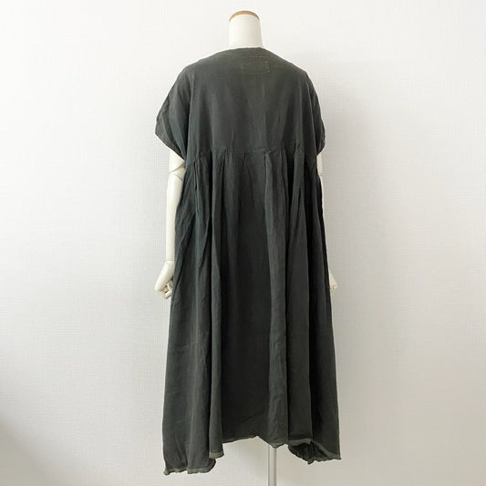 57c24 日本製 Veritecoeur ヴェリテクール 半袖ワンピース リネンワンピース リネン100% F モスグリーン ロングワンピース トップス ドレス