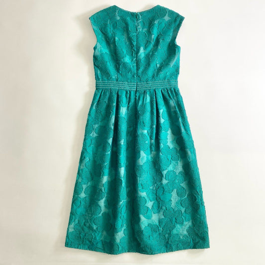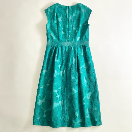 34c21 《未使用》 定価¥101,200 HANAE MORI ハナエモリ ノースリーブワンピース 38 グリーン ドレス フラワーデザイン タグ付き
