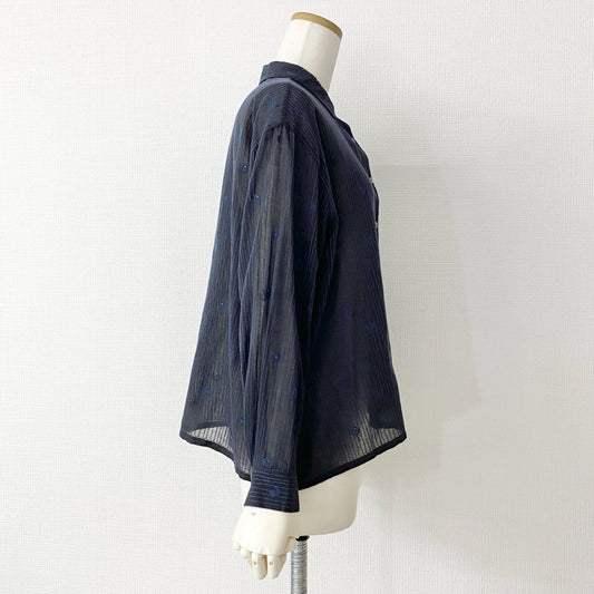 15c21 《極美品》 タグ付 mina perhonen ミナペルホネン 日本製 aas1182 swing flower スウィングフラワー 長袖シャツ ブラウス 36 ネイビー コットン MADE IN JAPAN