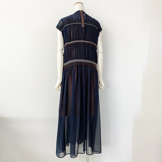 73c10 《美品》 日本製 kolor カラー ノースリーブワンピース シースルー シアーギャザー 2 ネイビー レディース ロングワンピース バックジップ ドレス