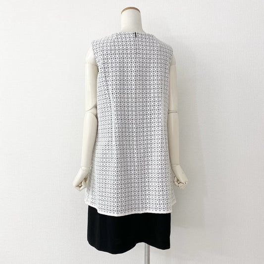 73c10 大きいサイズ 日本製 NEMIKA by Leilian ネミカ レリアン ノースリーブワンピース 13 ホワイト ブラック レディース 膝丈ワンピース バックジップ