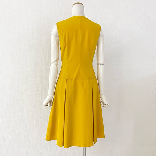 20c11 《美品》 FOXEY NEW YORK フォクシーニューヨーク ウォータープルーフストレッチ ドレス ワンピース 38 イエロー 日本製 ノースリーブ
