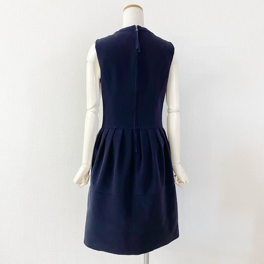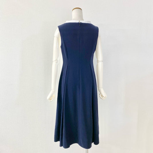 46c11 《美品》 Rene ルネ パールボタン白襟ワンピース 36 ネイビー 日本製 ドレス 6916410 ノースリーブ バックジップ