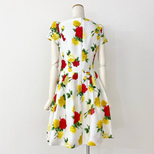 71c10 M'S GRACY エムズグレイシー フラワープリントワンピース 36 ホワイト 花柄 薔薇 バラ ドレス 日本製