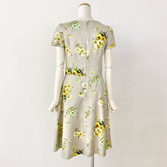 20c11 《美品》 M'S GRACY エムズグレイシー フラワープリントワンピース コスモス 38 ベージュ 日本製 ドレス 秋桜 バックジップ