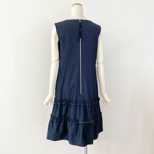 23c11 《美品》 Rene basic ルネ ベーシック バックジップ ストレッチフリルワンピース 36 ネイビー 日本製 伸縮性◎ ドレス 夏