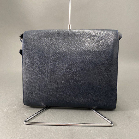 Bb8 DELVAUX デルヴォー Dロゴ 金具 ショルダーバッグ フラップバッグ ベルギー製 鞄 かばん ネイビー レザー アシンメトリー