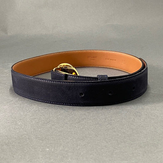b10 CELINE セリーヌ STAR BALL スターボール レザーベルト ブラック イタリア製 金バックル ヴィンテージ レトロ キャビアスキン