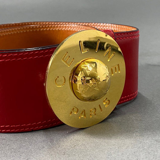 b10 CELINE セリーヌ STAR BALL スターボール レザーベルト レッド イタリア製 金バックル ヴィンテージ レトロ