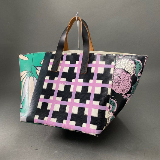 Cb9 MARNI マルニ FLOWER CAFE フラワーカフェ PVC ハンドバッグ トートバッグ チェック柄 花柄 マルチカラー ピンク グリーン