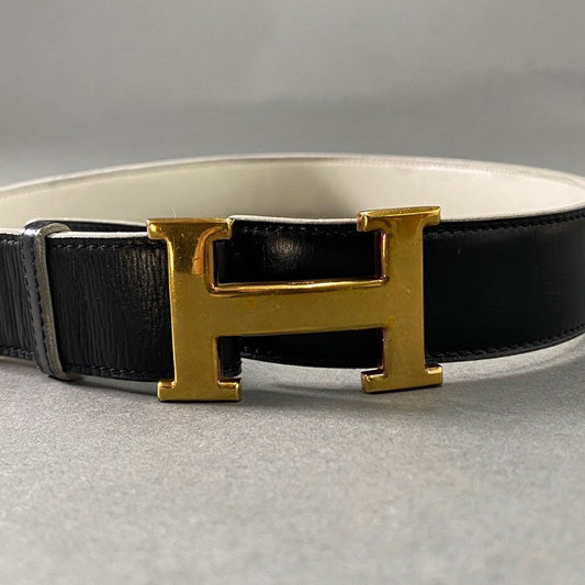 b8-9 HERMES エルメス フランス製 Hロゴ バックル ベルト コンスタンス リバーシブル ブラック ホワイト レザー MADE IN FRANCE