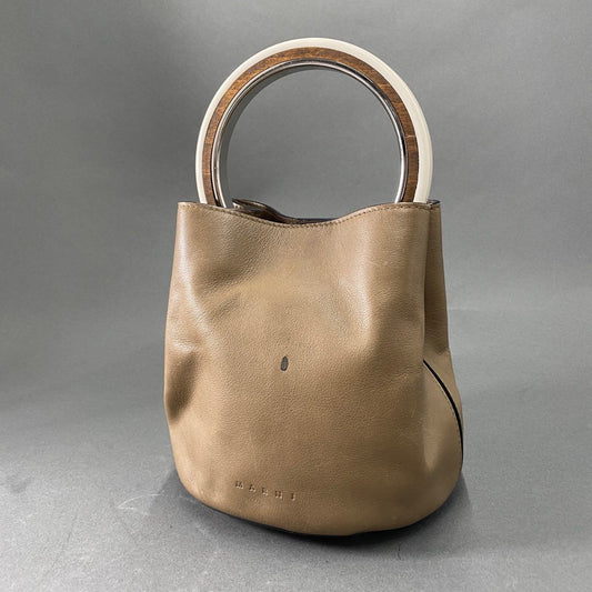 Ab8 MARNI マルニ イタリア製 PANNIER パニエ ハンドルハンドバッグ ミニバッグ バケットバッグ ブラウン レザー MADE IN ITALY
