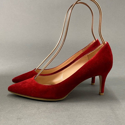 12d21 Gianvito Rossi ジャンヴィットロッシ ポインテッドトゥ パンプス スウェード 35 1/2 レッド レディース 婦人靴