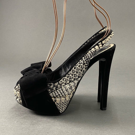 4d21 Christian Dior クリスチャンディオール ツイード切替 ピンヒール パンプス オープントゥ 37D レディース 靴