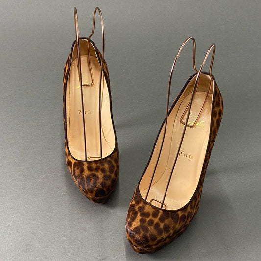 4d21 Christian Louboutin クリスチャン ルブタン レオパード ハイヒール パンプス 38 ブラウン シューズ ヒョウ柄 イタリア製