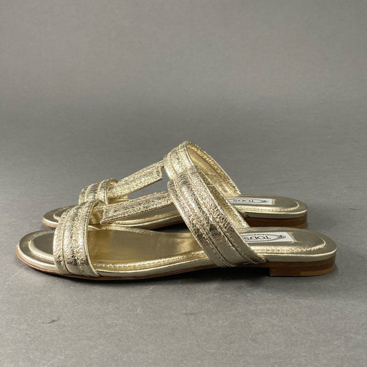 4d21 【極美品】 TOD'S トッズ ダブルT ダブルティー フラットサンダル レザーサンダル 35 1/2 ゴールド レディース