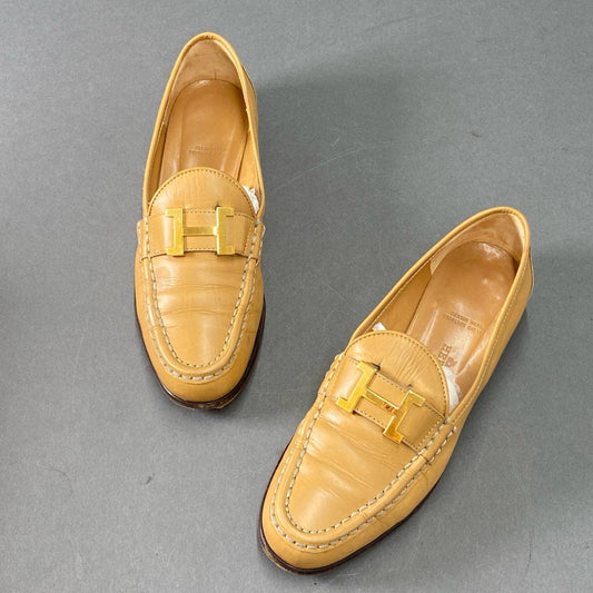 1d21 HERMES エルメス H金具 コンスタンス ローファー 36 ベージュ レザー レディース シューズ イタリア製