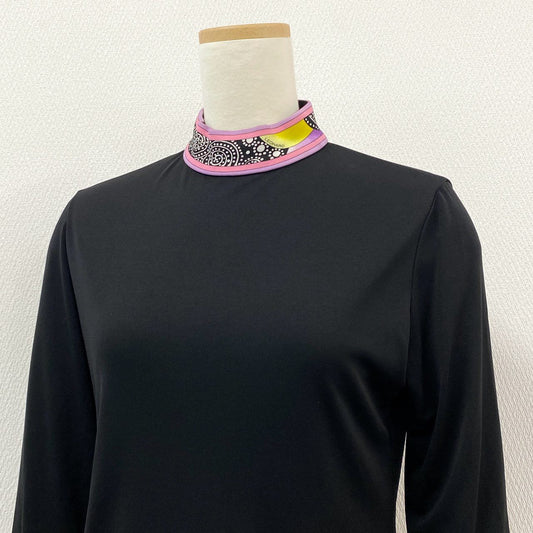 66i18 LEONARD レオナール カンカン素材 ハイネック 長袖カットソー トップス M ブラック レディースu02t